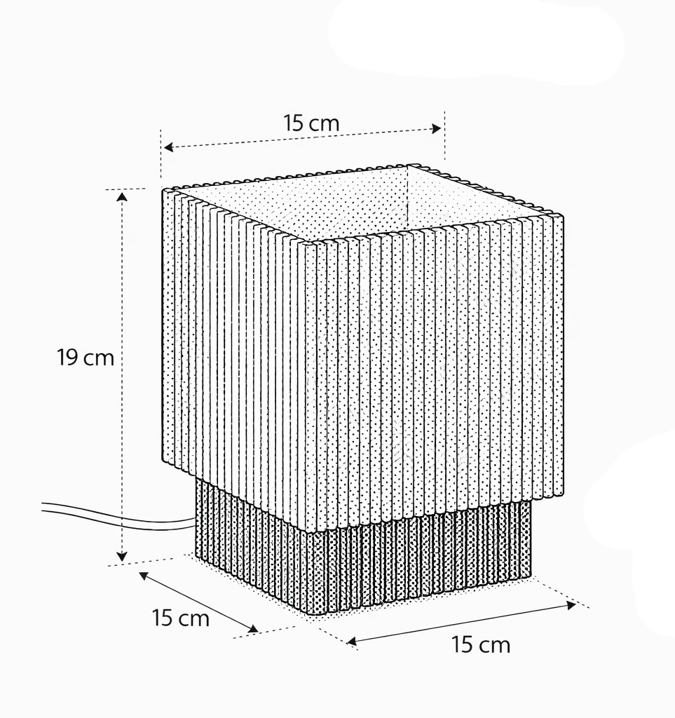 La Lámpara Prism es una pieza de iluminación contemporánea que transforma la luz en volumen. Su geometría cúbica, definida por delicadas estrías verticales, crea un juego sutil de sombras y profundidad que cambia según el ángulo desde el que se observe.